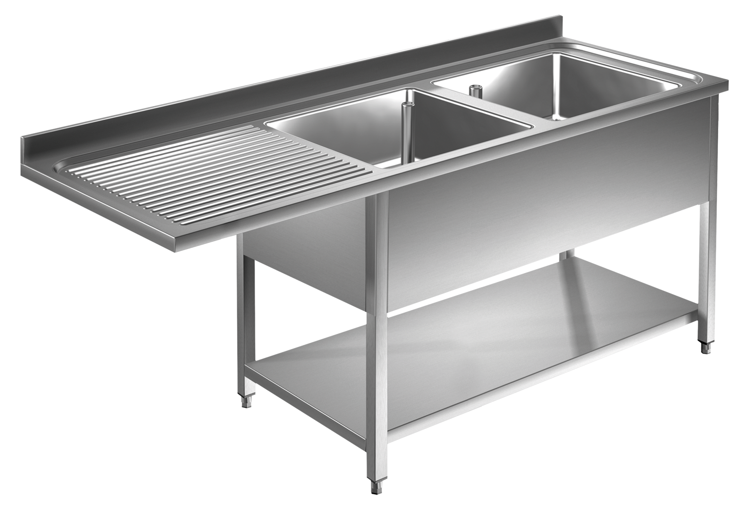Spülmaschinen Spültisch 1,6m-2 Becken rechts L40xB40xT25cm AISI 430 - Kopie