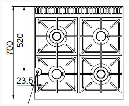 - 4 Brenner mit 7,0 kW / 6.019 kcal/h