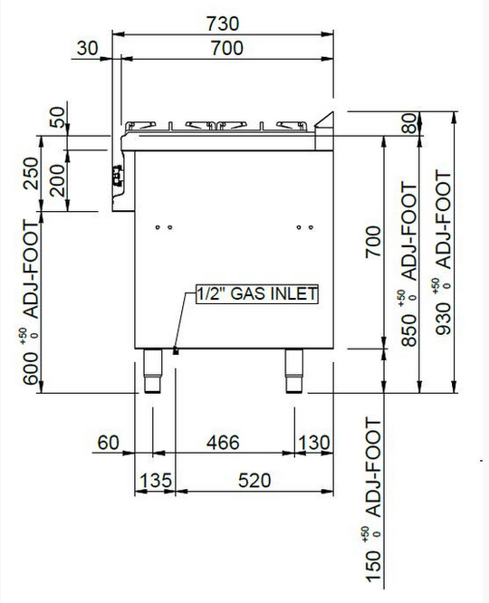 - 4 Brenner mit 7,0 kW / 6.019 kcal/h